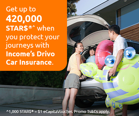 [1]The STAR$® is only available for successful eligible applicants who have purchased Drivo Classic plan, Drivo Advantage plan or Drivo Premium plan, and each policyholder will be entitled denomination of STAR$® stated in the terms and conditions. Subject to Income's underwriting decision.