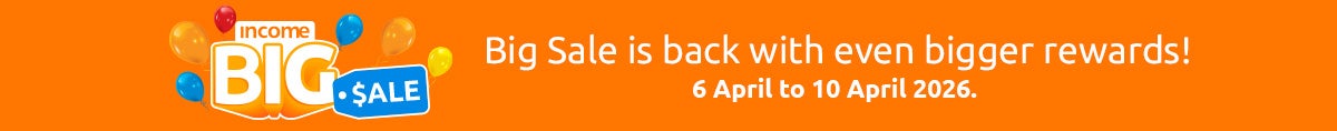 3. A customer may not enjoy this Promotion in conjunction with any other promotion and/or incentive offered by Income Insurance unless otherwise advised by Income Insurance at the point of application.