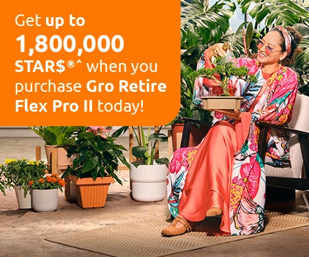 Get up to 1,800,000 STAR$®^ when you purchase an eligible regular premium Gro Retire Flex Pro II now.